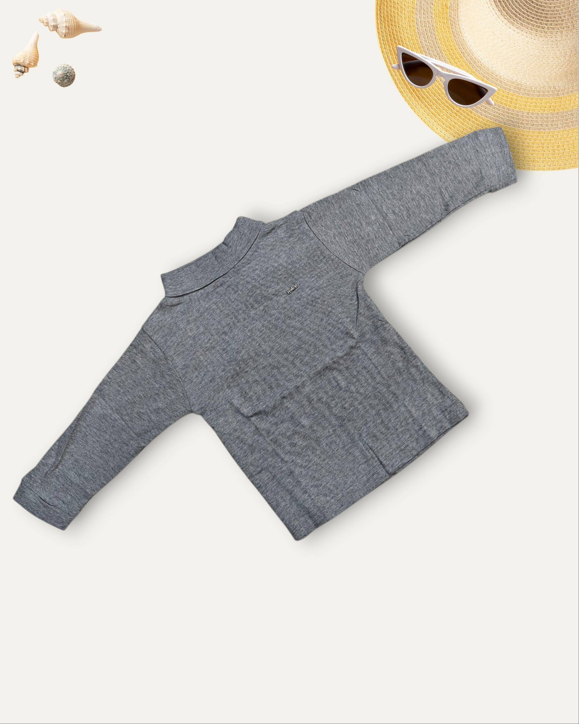 Elevate your child’s winter wardrobe with this grey high-neck full-sleeve T-shirt for kids. Crafted from soft, breathable cotton, it delivers warmth and all-day comfort while maintaining a sleek, versatile style. The ribbed cuffs provide a snug fit, and the subtle embroidered logo on the chest adds a refined finishing touch—perfect for pairing with jeans, skirts, or layered under jackets.