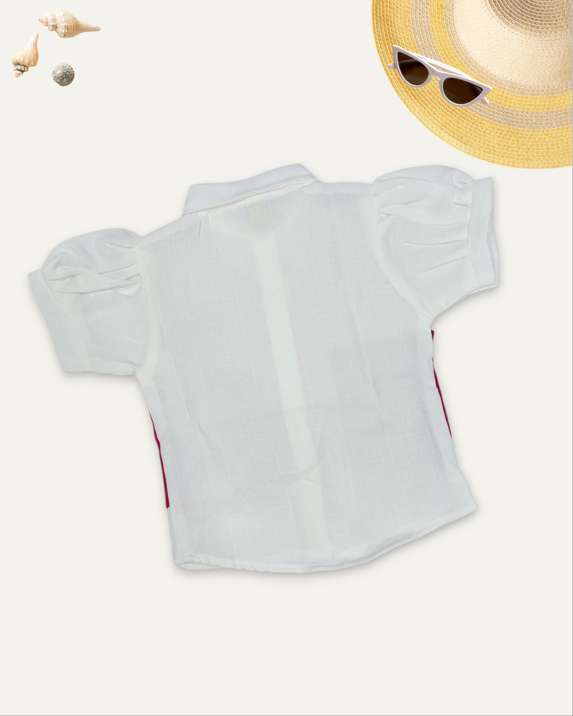 Make her stand out in style with this chic layered top, featuring a crisp white shirt base and a bold dark hot pink sleeveless overlay. Adorned with colourful beads on the neckline and a statement white bow, itβs perfect for adding a pop of glamour to her wardrobe while keeping her comfortable all day.