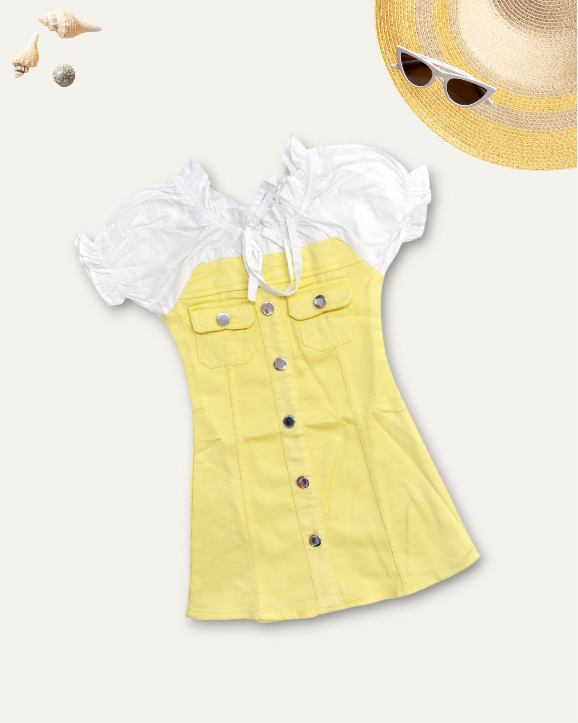 🌼 Two-Tone Charm – Beautiful blend of crisp white puff sleeves with a vibrant sunshine yellow body.